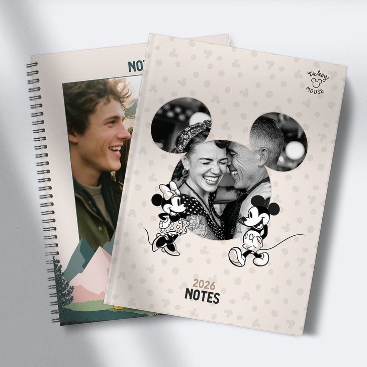 Ob für die Schule, das Studium oder als kreatives Tagebuch – mit unseren personalisierten Disney Notizbüchern wird jede Seite zum Abenteuer. Kombiniere Deine eigenen Fotos mit den zeitlosen Klassikern von Micky & Co. oder den rasanten Helden aus Cars und Toy Story. Gestalte ein Unikat, das so einzigartig ist wie Deine Gedanken!