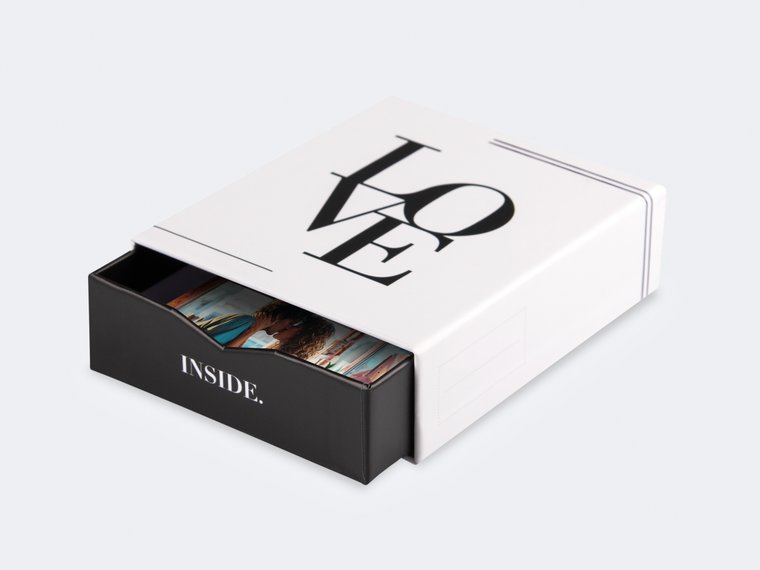 Deine Fotoabzüge als Geschenk in einer Box verpackt. Viele Designs zur Auswahl!