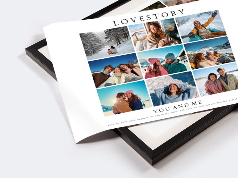 Individualisierbare Designs und Größen mit beliebig vielen Bildern. Verfügbar mit und ohne Rahmen.